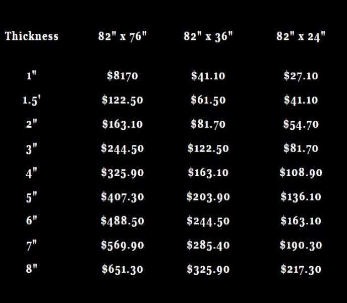 FOAM PRICE LIST To place an order call 707-794-9307 |